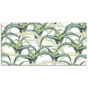 Podkładka na biurko Tropikalny obraz Aloes 120x60 cm Podkładka winylowa na biurko to nie tylko praktyczny dodatek, ale także dekoracyjny element, który subtelnie podkreśli styl każdego pomieszczenia, bez względu na wiek czy charakter. Każdy blat, na którym zdecydujesz się położyć naszą wyjątkową podkładkę, nabierze nowego wymiaru estetycznego, wzbogacając zarówno przestrzeń dziecięcego pokoju, jak i eleganckiego biura. Wygląd naszej podkładki winylowej jest rezultatem precyzyjnego, cyfrowego druku, który podkreśla intensywność kolorów i detalii wzoru. Po rozłożeniu maty możesz spokojnie pracować, nie martwiąc się o niechciane rysy czy inne uszkodzenia. Mata jest niezwykle wytrzymała i solidna.