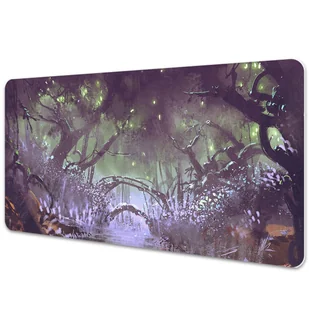 Podkładka na biurko z nadrukiem Krajobraz ciemnego lasu 90x45 cm Podkładka winylowa na biurko to nie tylko praktyczny dodatek, ale także dekoracyjny element, który subtelnie podkreśli styl każdego pomieszczenia, bez względu na wiek czy charakter. Każdy blat, na którym zdecydujesz się położyć naszą wyjątkową podkładkę, nabierze nowego wymiaru estetycznego, wzbogacając zarówno przestrzeń dziecięcego pokoju, jak i eleganckiego biura. Wygląd naszej podkładki winylowej jest rezultatem precyzyjnego, cyfrowego druku, który podkreśla intensywność kolorów i detalii wzoru. Po rozłożeniu maty możesz spokojnie pracować, nie martwiąc się o niechciane rysy czy inne uszkodzenia. Mata jest niezwykle wytrzymała i solidna.