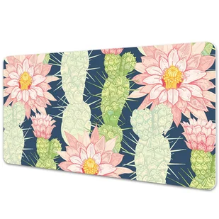 Podkładka na biurko z nadrukiem Kwitnące kaktusy 90x45 cm Podkładka winylowa na biurko to nie tylko praktyczny dodatek, ale także dekoracyjny element, który subtelnie podkreśli styl każdego pomieszczenia, bez względu na wiek czy charakter. Każdy blat, na którym zdecydujesz się położyć naszą wyjątkową podkładkę, nabierze nowego wymiaru estetycznego, wzbogacając zarówno przestrzeń dziecięcego pokoju, jak i eleganckiego biura. Wygląd naszej podkładki winylowej jest rezultatem precyzyjnego, cyfrowego druku, który podkreśla intensywność kolorów i detalii wzoru. Po rozłożeniu maty możesz spokojnie pracować, nie martwiąc się o niechciane rysy czy inne uszkodzenia. Mata jest niezwykle wytrzymała i solidna.