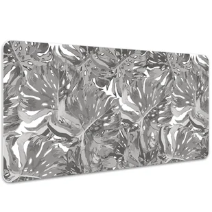 Podkładka na biurko z nadrukiem Szare liście monstery 100x50 cm Podkładka winylowa na biurko to nie tylko praktyczny dodatek, ale także dekoracyjny element, który subtelnie podkreśli styl każdego pomieszczenia, bez względu na wiek czy charakter. Każdy blat, na którym zdecydujesz się położyć naszą wyjątkową podkładkę, nabierze nowego wymiaru estetycznego, wzbogacając zarówno przestrzeń dziecięcego pokoju, jak i eleganckiego biura. Wygląd naszej podkładki winylowej jest rezultatem precyzyjnego, cyfrowego druku, który podkreśla intensywność kolorów i detalii wzoru. Po rozłożeniu maty możesz spokojnie pracować, nie martwiąc się o niechciane rysy czy inne uszkodzenia. Mata jest niezwykle wytrzymała i solidna.