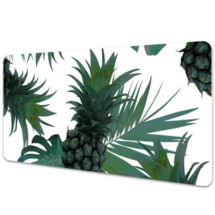 Podkładka na biurko z nadrukiem Tropikalne zielone ananasy 90x45 cm Podkładka winylowa na biurko to nie tylko praktyczny dodatek, ale także dekoracyjny element, który subtelnie podkreśli styl każdego pomieszczenia, bez względu na wiek czy charakter. Każdy blat, na którym zdecydujesz się położyć naszą wyjątkową podkładkę, nabierze nowego wymiaru estetycznego, wzbogacając zarówno przestrzeń dziecięcego pokoju, jak i eleganckiego biura. Wygląd naszej podkładki winylowej jest rezultatem precyzyjnego, cyfrowego druku, który podkreśla intensywność kolorów i detalii wzoru. Po rozłożeniu maty możesz spokojnie pracować, nie martwiąc się o niechciane rysy czy inne uszkodzenia. Mata jest niezwykle wytrzymała i solidna.