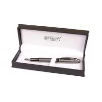 Cechy: - materiał - metal (stal) - pióro na standardowe naboje, stalówka - irydowa , F - opakowanie rodzaj - zamykane etui kartonowe, wyściełane wew. materiałem, posiada granatowe, lakierowane pudełko ochronne.