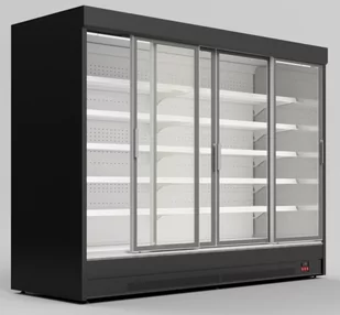 wymiary 2580x904x1990 mm, regał z drzwiami przesuwnymi, bez agregatu (REMOTE), 4 rzędy półek, chłodzenie dynamiczne