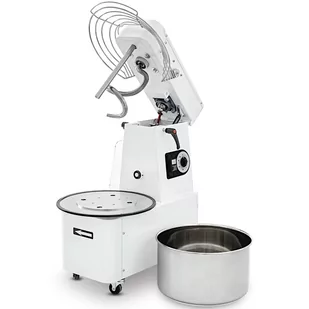 Miesiarka spiralna z podnoszoną głowicą i wyjmowaną dzieżą firmy Prismafood idealnie sprawdzi się w pizzerii, piekarni, cukierni, pierogarni i pączkarni do wyrabiania ciężkich ciast nawet do 56 kg/h. Obudowa została wykonana z wysokiej jakości stali lakierowanej na biało, dzięki czemu maszyna jest odporna na uszkodzenia mechaniczne, i łatwiejsza w zachowaniu czystości. Dla bezpieczeństwa żywności, elementy takie jak dzieża oraz spirala zostały wykonane ze stali nierdzewnej 18/10 (AISI 304), która nie wpływa na smak ani zapach przygotowywanego ciasta. Sterowanie miesiarką odbywa się za pomocą wbudowanego timera, który umożliwia precyzyjne odmierzenie czasu pracy i dwustopniowy wyłącznik. Maszyna jest wyposażona w 4 koła i hamulce zapewniające wygodny transport na terenie kuchni. w kuchni.