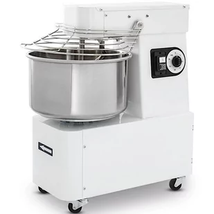 Miesiarka spiralna marki Prismafood ze stałą głowicą i dzieżą, idealnie sprawdzi się w pizzerii, piekarni, cukierni, pierogarni i pączkarni do wyrabiania ciężkich ciast nawet do 35 kg/h. Obudowa została wykonana z wysokiej jakości stali lakierowanej na biało, dzięki czemu maszyna jest odporna na uszkodzenia mechaniczne, i łatwiejsza w zachowaniu czystości. Dla bezpieczeństwa żywności, elementy takie jak dzieża oraz spirala zostały wykonane ze stali nierdzewnej 18/10 (AISI 304), która nie wpływa na smak ani zapach przygotowywanego ciasta. Sterowanie miesiarką odbywa się za pomocą wbudowanego timera, który umożliwia precyzyjne odmierzenie czasu pracy i dwustopniowy wyłącznik. Maszyna jest wyposażona w 4 koła i hamulce zapewniające wygodny transport na terenie kuchni. w kuchni.