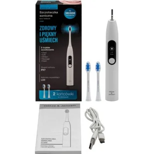 Zdrowy i piękny uśmiech Soniczna pielęgnacja zębów Szczoteczka soniczna GÖTZE & JENSEN ST300 to urządzenie, które zmienia codzienny rytuał mycia zębów w profesjonalny zabieg. Generuje do 38 000 ruchów na minutę – to efektywność, której nie osiągniesz ręczną szczoteczką. Wyposażona w akumulator 800 mAh zapewnia do 130 minut nieprzerwanej pracy, co wystarczy na ponad miesiąc szczotkowania dwa razy dziennie. W zestawie otrzymujesz 2 końcówki, które wystarczą na około pół roku użytkowania. Pięć trybów dla twoich zębów Wybierz spośród 5 trybów szczotkowania dopasowanych do aktualnych potrzeb.