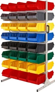 qBox Regał do pojemników warsztatowych, dwustronny. Wym: 1610x940x650mm 64 pojemniki (Regał z pojemnikami)