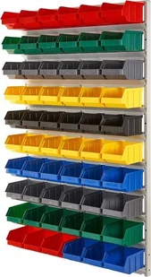 qBox Regał do pojemników warsztatowych, wiszący. Wym: 1610x940x380mm 60 pojemników - takie same (Regał z pojemnikami)