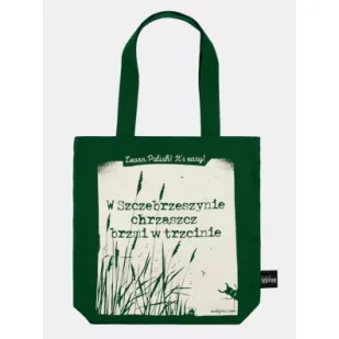 W Szczebrzeszynie chrząszcz brzmi w trzcinie! Ten najbardziej znany polski łamaniec językowy od lat sprawia problem naszym rodakom i wprawia w osłupienie obcokrajowców. Torba z chrząszczem radośnie brzmiącym w zielonej trzcinie to doskonały wybór na wyjazd zagraniczny, sprawdzi się także jako prezent dla obcokrajowca lub pamiątka z Polski. Uwaga! Nie ponosimy odpowiedzialności za połamane języki. Przed próbą przeczytania łamańca skonsultuj się z lekarzem lub farmaceutą. Gramatura 280 g/m2Nadruk wykonany metodą sitodruku (wysokiej jakości, bardzo trwały)100% bawełna, torba ekologicznaIdealna pamiątka z PolskiElegancka metka bocznaW środku torby pojemna kieszonka na akcesoriaWymiary: