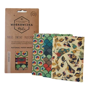 Woskowijki by Malu to naturalne opakowania do żywności mające zastąpić folię spożywczą, aluminiową lub jednorazowe pojemniki plastikowe. Jest to rodzaj bawełnianej szmatki nasączonej specjalną mieszaniną na bazie wosku pszczelego, w którą można owijać żywność aby ją przechować lub transportować. Są w 100% naturalne, wielokrotnego użytku oraz posiadają właściwości antybakteryjne, które skutkują dłuższą świeżością przechowywanego jedzenia. Woskowijki idealnie nadają się do przechowywania chleba, kanapek, warzyw, owoców, serów, przekąsek, do przykrycia miseczki lub kubeczka. Nie zaleca się używania ich do surowego mięsa. Po prostu nałóż ją na naczynie lub przedmiot, dociśnij dłońmi i odczekaj kilka sekund. Pod wpływem ciepła rąk i nacisku przybierze kształt przedmiotu i zlepi się opakowując wybraną rzecz.