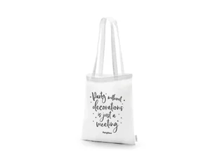 Torba na zakupy wykonana z bawełny w kolorze białym z czarnym napisem Party without decorations is just a meeting. Wymiary: 39 x 42 cm.