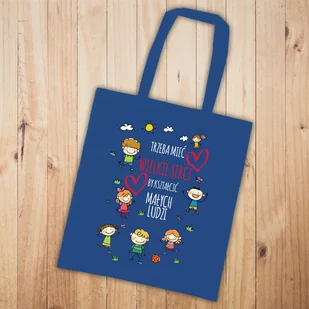 Niebieska torba z nadrukiem - Trzeba mieć wielkie serce, by kształcić małych ludzi