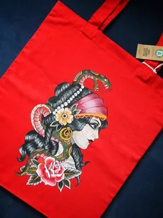 Shopperka torba na zakupy ręcznie malowana TATUAŻ