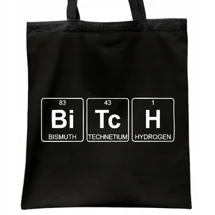✨ Czarna bawełniana torba na zakupy z napisem „Bitch” – sarkastyczny motyw w chemicznym stylu! ✨ Numer wzoru: U-01195 👜 CECHY NASZYCH TOREB Wymiary: 38 x 42 cm Materiał: 100% bawełna wysokiej jakości (canvas) Kolor: Czarny Ręczne szycie:
