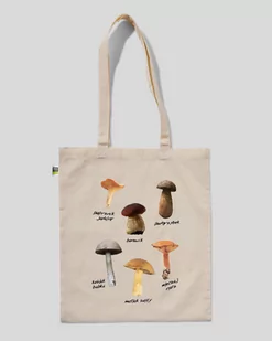 TORBA BAWEŁNIANA na zakupy grzyby. Nadruk na torbie na zakupy przedstawia grzyby występujące w Polsce. Bawełna z certyfikatem Fairtrade rozmiar ok. 38x42 cm ...