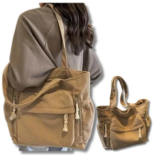 Torba Damska Sztruksowa Shopper Carmel Na Ramie Zasuwana ⭐ Casual Chic Shoulder Bag – Kremowo-Karmelowa Torebka na Ramię ⭐ ✨ Stylowa, praktyczna i wygodna – ...