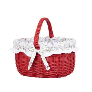 Ręcznie wykonany kosz zakupowy w kolorze czerwonym. Obszyty materiałem, wykończony ozdobną lamówką i dekoracyjnymi kokardkami. Jest solidny, stabilny i prakt...