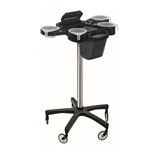 Wózek techniczny wykonany jest z wytrzymałego wysokiej jakości tworzywa co gwarantuje długą żywotność produktu. Posiada 4 wyjmowane pojemniki, miejsca na grzebienie i szczotki oraz inne akcesoria. Do tego ma wbudowaną obcinarkę do folii aluminiowej. Wózek jest wyposażony w nowoczesne kółka NO-HAIR Wheels, które są odporne na zabrudzenia i posiadają system zapobiegający wkręcaniu się włosów w łożyska kółek. Wymiary: Długość - 54 cm, szerokość - 64 cm, wysokość - 91 cm Technologia NO-HAIR Wheels daje wymierne korzyści: