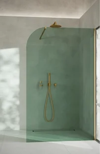 kabina typu: WALK IN przyścienna, wymiary: 120x194 cm, szerokość: 120 cm, wysokość: 194 cm, szkło kolor: zielony - hartowane, grubość szkła: 8 mm, profil przyścienny: aluminium złoty szczotkowany, długość wspornika: 100 cm, powło