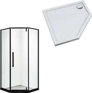 Kabina prysznicowa pięciokątna 80 czarna LOFT z wysokim 14 cm białym brodzikiem