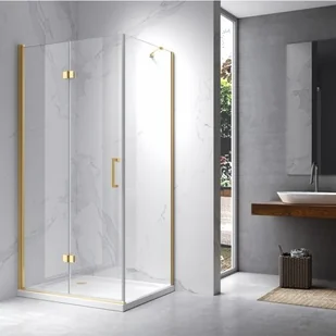 Złota kabina prysznicowa prostokątna drzwi pojedyncze składane 120x90 ZES-KZ20F-GL-120X90