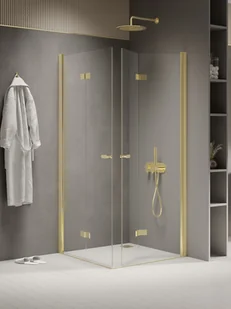New Trendy New Soleo Light Gold 100x80x195 cm kabina złoty połysk/szkło przejrzyste K-1956 | Darmowa dostawa