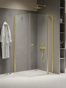 New Trendy New Soleo Light Gold 110x90x195 cm kabina wspornik skośny złoty połysk/szkło przejrzyste K-1865 | Darmowa dostawa