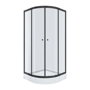 . niski brodzik, półokrągły ergonomiczny kształt, transparentne szyby, wykończenie czarny mat
