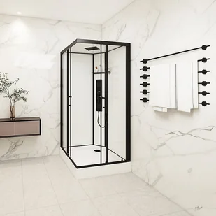 Kabina prysznicowa z hydromasażem kwadratowa - Czarny mat i biały - szer. 90 x gł. 90 x wys. 215 cm - TANITO