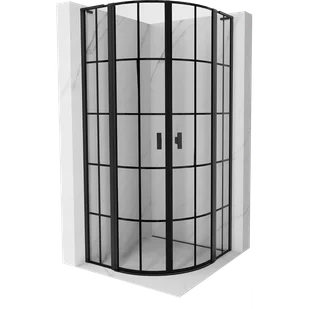Mexen Mist L kabina prysznicowa półokrągła uchylna 100 x 100 cm, czarna kratka, czarna - 8A32L-100-100-70-77
