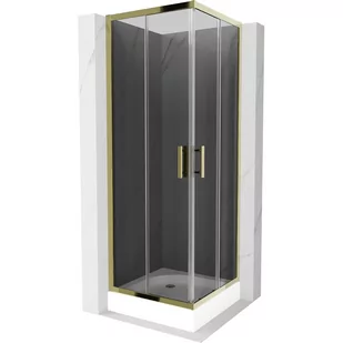 Złoty Grubość szkła: 5 mm Wejście: Drzwi rozsuwane Wysokość brodzika: 14 cm Kolor brodzika: Biały Powłoka ochronna: