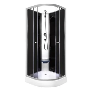 Kabina prysznicowa Kerra Evora Black 90x90 cm z drzwiami przesuwnymi, szkłem hartowanym 4 mm i brodzikiem akrylowym. Zestaw zawiera baterię, siedzisko i zestaw natryskowy. Idealna do nowoczesnych i klasycznych łazienek.