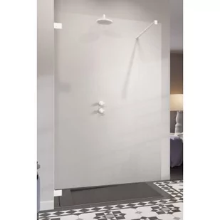 Essenza Pro White Walk-in szyba prysznicowa 1500 mm h: 2000 biały - 10103150-04-01 - Wymiar nominalny: 1485-1493 mm - Wysokość: 2000 mm - Maksymalna długość stabilizatora górnego: 1500 mm - Szkło bezpieczne hartowane o grubości 6 mm - Kolor okuć: