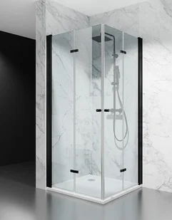 Kabina prysznicowa Swiss Liniger 95x95 cm z przezroczystym szkłem hartowanym 8 mm i profilami w czarnym macie. Składana konstrukcja oszczędza miejsce, a solidne okucia zapewniają trwałość. Dostępna w dom-lazienka. pl – elegancja i wygoda.