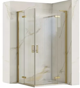 Hugo Rea Double Gold kabina prysznciowa drzwi uchylne podwójne. Kabina złota szczotkowana 100x80 cm z drzwiami uchylnymi. Złota kabina kwadratowa 100x80.