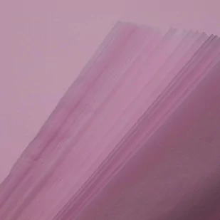 Bibułka Witrażowa Do Pakowania Bladoróżowa 50x70cm 50 szt. Bibułka do pakowania Bladoróżowa 50 arkuszy o wymiarach 50x70cm i gramaturze 22-24 g/m2, jednostronnie woskowana. Idealna do wszelkiego rodzaju prac plastycznych, witraży, rękodzieł, pakowania i ozdabiania podarunków i produktów. Bibułkę cechuje wysoka plastyczność co pozwala na doskonałe dopasowanie do każdego opakowania, a ze względu na zwiększoną gramaturę jest ona niezwykle wytrzymała, co czyni ją doskonałym materiałem do wykorzystania w szkole, domu, biurze, kwiaciarni, sklepie itp. Przed wysyłką bibuła jest składana do rozmiaru 35x50 cm