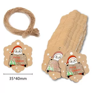 Etykieta Tekturowa Ze Sznurkiem Merry Christmas 5 szt. Zawieszki tekturowe ze sznurkiem, świetnie do przyozdobienia wszelkiego rodzaju prezentów, produktów, rękodzieł i innych przedmiotów. Wymiar etykiety: 3,5x4 cm UWAGA! Oferta nie zawiera całej szpulki sznurka. W zestawie 5 pasków sznurka, każdy o długości około 25-26 cm.