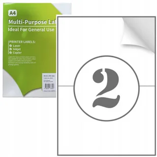 Etykiety Specmark A4. Jedno opakowanie zawiera 100 arkuszy. Na jednym arkuszu znajdują się dwie etykiety.