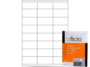 Etykiety samoprzylepne Oficio 70x36 białe (24) Etykiety uniwersalne do wszechstronnych zastosowań, do zadruku zarówno na drukarkach atramentowych, jak i laserowych (kolorowych oraz czarno-białych). Etykiety matowe wykonane są z bardzo dobrej jakości papieru.