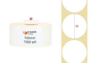 Etykiety termiczne samoprzylepne białe fi30 mm 1000szt Ø40mm