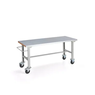 Wytrzymały mobilny stół warsztatowy z blatem pokrytym warstwą stali, co zapewnia odporność na uderzenia i wilgoć. Stół jest idealnie dostosowany do użytkowania w wymagających przestrzeniach przemysłowych, gdzie niezbędne jest wytrzymałe wyposażenie. Wyposażony w uchwyt dla łatwego prowadzenia. Stwórz mobilne stanowisko pracy dzięki stołowi na kółkach. Blat pokryty warstwą blachy stalowej. Dzięki temu powierzchnia wykazuje dużą odporność na uderzenia i zarysowania oraz nadaje się do pracy z ostrymi przedmiotami. Blat jest odporny na ciecze, chemikalia i smary. Łatwy w czyszczeniu. Doskonały do wymagających środowisk przemysłowych.