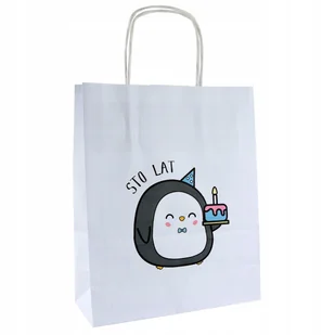 torba papierowa z nadrukiem STO LAT torebka na urodziny 18x8x22 Pingwinek