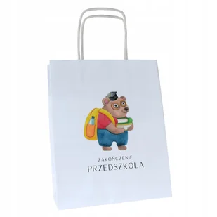 torba z nadrukiem na zakończenie przedszkola 18x8x22cm dla dzieci MISIEK