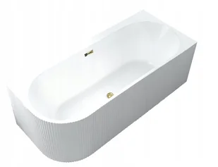 CORCIANO Wanna wolnostojąca CRETE PRAWA PLUS 170 x 75 cm biała system przelewowy pionowe paski ryflowana prążkowana AKCESORIA CZARNE