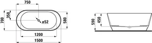 Laufen Pro Wanna wolnostojąca 150x70 cm czarny mat/biały połysk H2439520680001