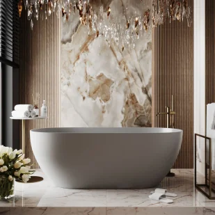 Massi Wanna wolnostojąca owalna z konglomeratu 160 x 75 cm RONA Grey mat / połysk przelew typu SLIM cienki rant