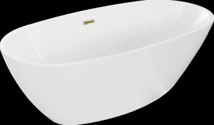 Wanna wolnostojąca o wymiarach 180 x 95 cm to idealne połączenie elegancji i funkcjonalności. Wykonana z akrylu sanitarnego, gwarantuje trwałość i odporność na matowienie oraz promieniowanie UV. Jej owalny kształt i błyszczące wykończenie w kolorze białym nadają nowoczesny wygląd każdej łazience. Dodatkowo, złote akcenty wypełniają całość luksusem. Wanna wyposażona jest w otwór przelewowy oraz zestaw syfonu z korkiem klik-klak, co zapewnia komfort użytkowania.