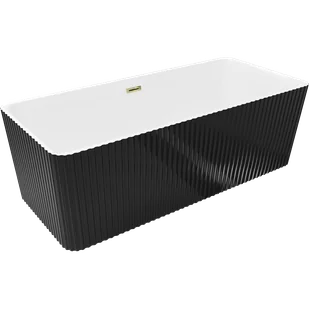 Mexen Nila wanna wolnostojąca ryflowana 170 x 75 cm, biała/czarna, przelew złoty - 52841708075-50