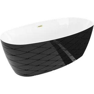Mexen Olea wanna wolnostojąca wzór 170 x 80 cm, biała/czarna, przelew złoty szczotkowany - 52821708075-55