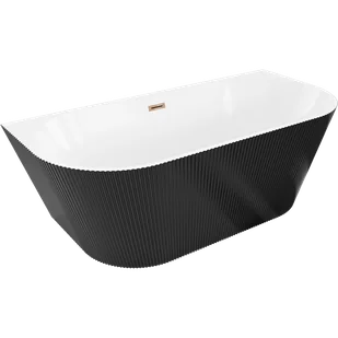 Mexen Oris wanna wolnostojąca przyścienna ryflowana 150 x 75 cm, biała/czarna, przelew różowe złoto - 52871507575-60